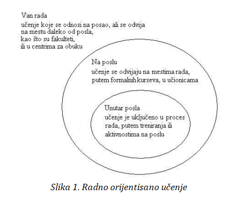 Globalizacija tržišta, nove informacione i komunikacione tehnologije ubrzavaju tokove trgovine, zahtevi kupaca postaju složeniji i individualizovani. Novi proizvodi i usluge javljaju se velikom brzinom [1].” Novi izazovi zahtevaju od preduzeća da se brže prilagode novim zahtevima i pitanjima klijenata. Dok u isto vreme proizvodni i životni ciklus proizvoda nastavlja da se skraćuje, informacije i obuke zaposlenih zastarevaju. Razvoj intelektualnog kapitala postao je ključ za sticanje i održavanje konkurentske prednosti na tržištu, odnosno znati šta, kako i zašto i shvatati važnost tog znanja. korporacijama, a samim tim i zaposlenima nameću se novi izazovi koji pokreću potrebu za učenjem i obučavanjem. Neki od njih su: nedostatak kvalifikovane radne snage; od radnika se zahteva da poseduje odgovarajuće znanje koje omogućava veću fleksibilnost na radnom mestu; a globalizacija poslovanja rezultira višestrukim izazovima. Od menadžera se očekuje da dostave znanja i veštine brže i efikasnije kad god i gde god je to potrebno. U vremenu just-in-time proizvodnje, samo just-in-time trening postaje ključni element organizacionih uspeha. Menadžeri su shvatili da kompanije koje nude obrazovanje i obuke “u toku” imaju višu stopu zaposlenih i zadržavaju prednosti bolje kvalifikovane radne snage. Njihova sposobnost da obrazuju i obučavaju zaposlene dok ih održavaju na poslu je veoma dragocena. Mogućnost obučavanja je značajna za privlačenje novih radnika i efikasan način da se poveća zadržavanje trenutne radne snage. Povećanje sposobnosti postojećeg kadra “u kući” je rešenje za problem nedostataka sposobnosti i povećava zadovoljstva zaposlenih. Povećanje produktivnosti, profitabilnosti i konkurentnosti na tržištu je identifikovano kao pokretačka snaga za povećanje obuke.Obuka ili trening zaposlenih podrazumieva promene u specifičnim znanjima, sposobnostima, veštinama, stavovima ili ponašanju zaposlenih sa ciljem da se pripreme za kvalitetnije obavljanje sadašnjeg posla. Obukom se može: povećati znanje o inostranim tržištima, usvojiti nove tehnologije, povećati kvalitet timskog rada, povećati inovativnost, podržati sigurnost zaposlenja i međusobno prihvaćanje i uspešnija saradnja. Radno orjentisano učenje - je učenje relevantno za posao koje se odvija unutar i na poslu, kao i van radnog mesta . Termini u vezi sa radno orjentisanim učenjem se koriste da bi označili sve oblike aktivnosti učenja koje se odvijaju u kontekstu rad (vidi sliku 1).