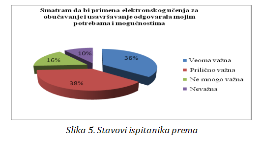 Na osnovu navedenog smatramo da su stavovi ispitanika prema e- učenju pozitivni i povoljni za njegovo integrisanje u proces obučavanja i podučavanja zaposlenih.