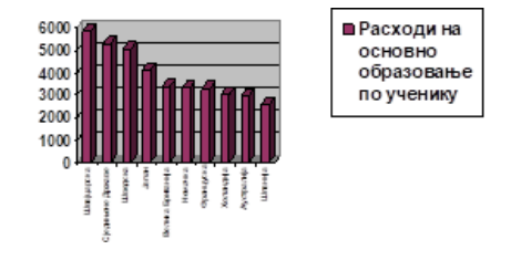 Grafikon 1. Rashodi na obrazovanje po određenim zemlјama izraženi u američkim dolarima.