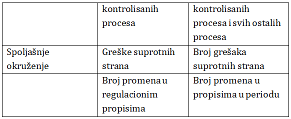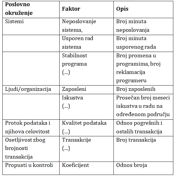 „vreme sporog poslovanja sistema“ (koji meri vremenske jedinice sporog poslovanja sistema zbog preopterećenosti) i sl. Sledeći pregled pokazuje predlog nekih faktora kontrole okruženja: