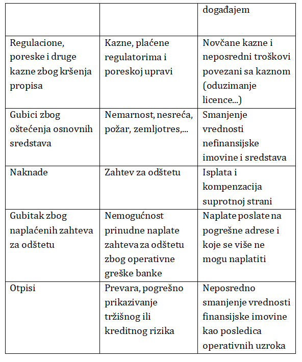 · događaje vrste „visoka frekvencija-niski gubici“; mogu se imenovati i kao „manji događaji“ (npr. prevare na polju poslovanja karticama, greške kod poravnanja na računima).