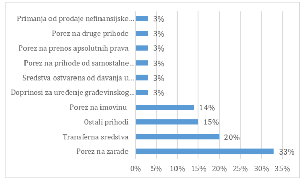 Analizirajući prihode i primanja jedinica lokalne samouprave za 2019. godinu, primetno je da porez na zarade i transferna sredstva čine preko 50% ukupno ostvarenih prihoda i primanja jedinica lokalne samouprave. Slede porez na imovinu i postali prihodi koji čine blizu trećinu ukupno ostvarenih prihoda i primanja jedinica lokalne samouprave u AP Vojvodini.