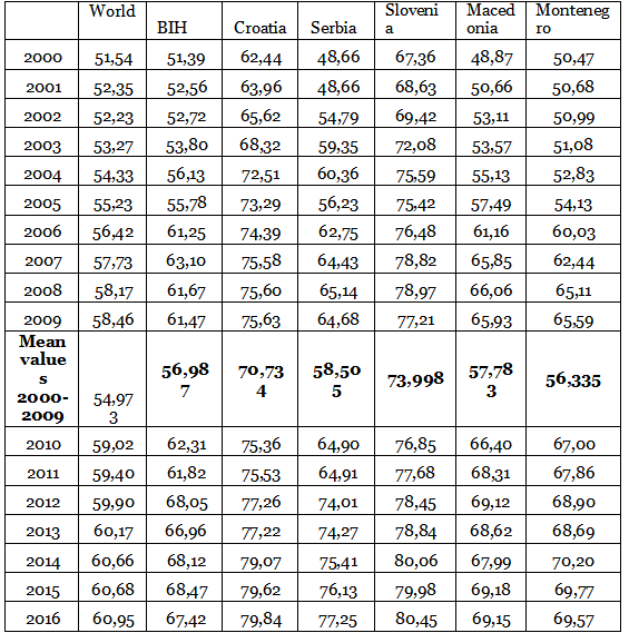 If a certain country was going through great historical events, wars, battles, political chases and riots, and was financially unstable, it did not use its material and natural resources enough, and in the end it was going through a hard transition (excessive population gap between rich and poor, lack of food, excessive prices, inflation, unemployment...) it is natural to expect that that same country is going to have an unenviable position on the world ranking list and it concerns globalization coefficients, global competitiveness indices, results of gross domestic product per capita, knowledge economy index, etc.