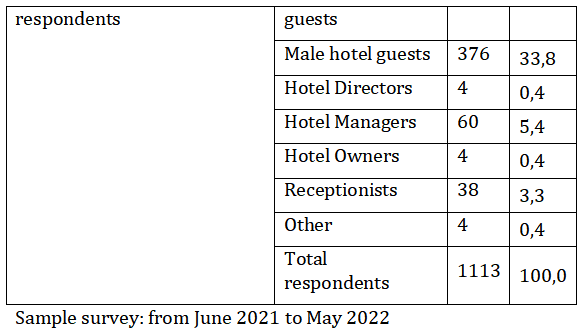 c) Hotel guests (both 4 and 5 stars hotels) Table 1 Structure of the respondents
