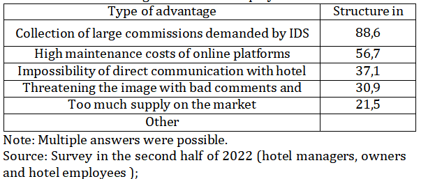 Table 5 Basic advantages of hotel cooperation with IDS sample of 96 hotel managers and hotel employees and owners