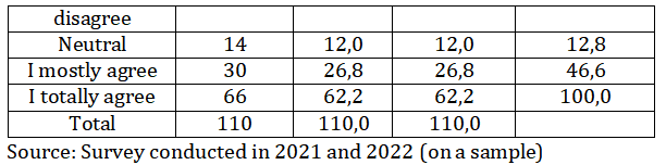 Research on the level of competitiveness of individual hotels can be expressed quantitatively (accommodation capacity occupancy, growth in demand, increase in traffic, etc.) or qualitatively, i.e. descriptively, where potential or loyal hotel guests express their views on the quality of hotel products and services. Each hotel guest can have his own opinion, which is expressed through the ranking. The following table refers to the ranking of the position offered, which was presented to responsible persons in 4- and 5- star hotels in Serbia (a sample of a total of 110 hotels). The question was: Do information and communication technologies strengthen the competitive position in the tourist and hotel market?