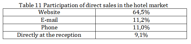 According to the overview from table 12, five forms of direct sales implementation in 4- and 5-star hotels, on the example of the selected sample, and for the year 2021 are: