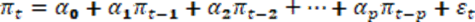 Nakon toga, kreiran je autoregresioni model AR(p) reda. U modelu su uzete vrednosti reda od 1 do 12, s obzirom na mesečnu frekvenciju dostupnih podataka. AR(p) model za inflaciju dat je u sledećoj formi: