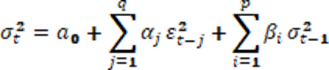 GARCH (p,q) model predstavljen od strane Bolersleva opisuje kretanje vremenske serije čija je bezuslovna varijansa stabilna, dok se uslovna varijansa () menja tokom vremena. GARCH (p,q) model može se prikazati u sledećoj formi: (Bolereslev, 1986)