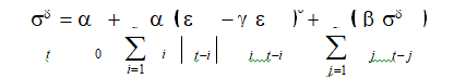 dok parameter opisuje efekat asimetrije na uslovnu varijansu.