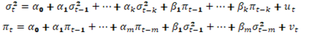 Veličina parametara α i β u prethodnoj jednačini određuje dinamiku kratkoročne volatilnosti posmatrane serije. Visoka vrednost koeficijenta β pokazuje da je šokovima na uslovnoj varijansi potrebno duže vremena da nestanu, što znači da je volatilnost  visoka.  Visoka  vrednost  koeficijenta  α  znači da volatilnost reaguje intenzivno na promene šokova