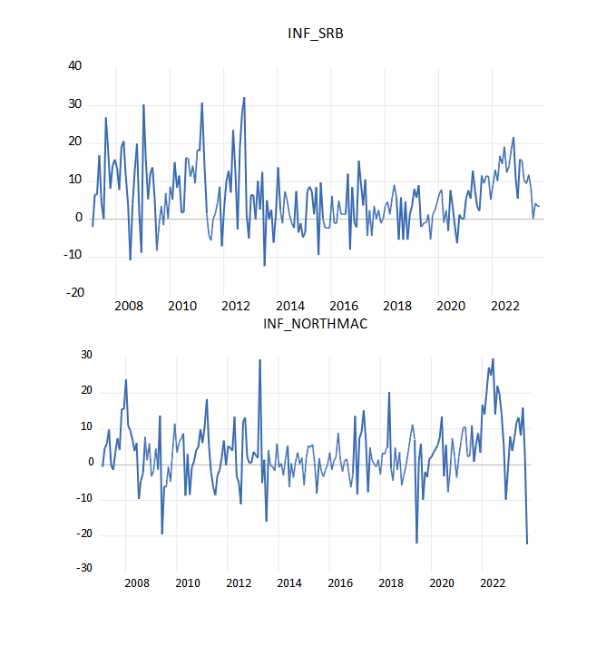 Empirijska analiza je sprovedena za period januar 2007–oktobar 2023. godine, osim u slučaju Crne Gore gde analiza obuhvata period januar 2010–oktobar 2023, za koji postoje raspoloživi podaci.
