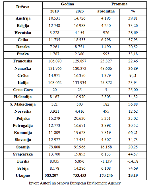 Uvidom u podatke iz Tabele 1 jasno se vidi da su najveći ekonomski gubici 2023. godine ostvareni u Nemačkoj, što se može reći i za 2010. godinu. Kada se posmatraju apsolutne vrednosti ekonomskih gubitaka može se primetiti da su pored Nemačke, Italija i Francuska takođe pretrpele ekonomske gubitke veće od 100.000 miliona evra. Kada se posmatra vrednost apsolutnog rasta ekonomskih gubitaka u 2023. naspram 2010. godine, može se podvući isti zaključak, budući da prednjače Nemačka, Italija i Francuska. Svakako je primetno da je u svim državama, sa izuzetkom Turske, došlo do rasta ekonomskih gubitaka u 2023. godini.